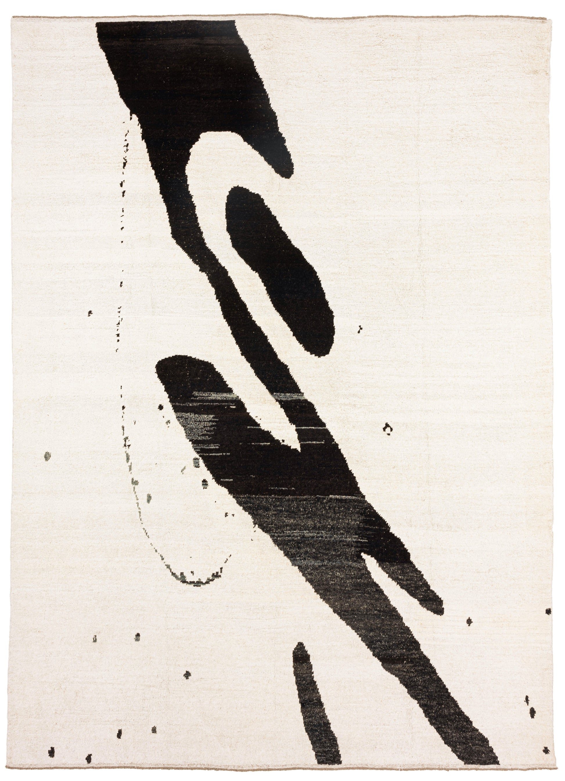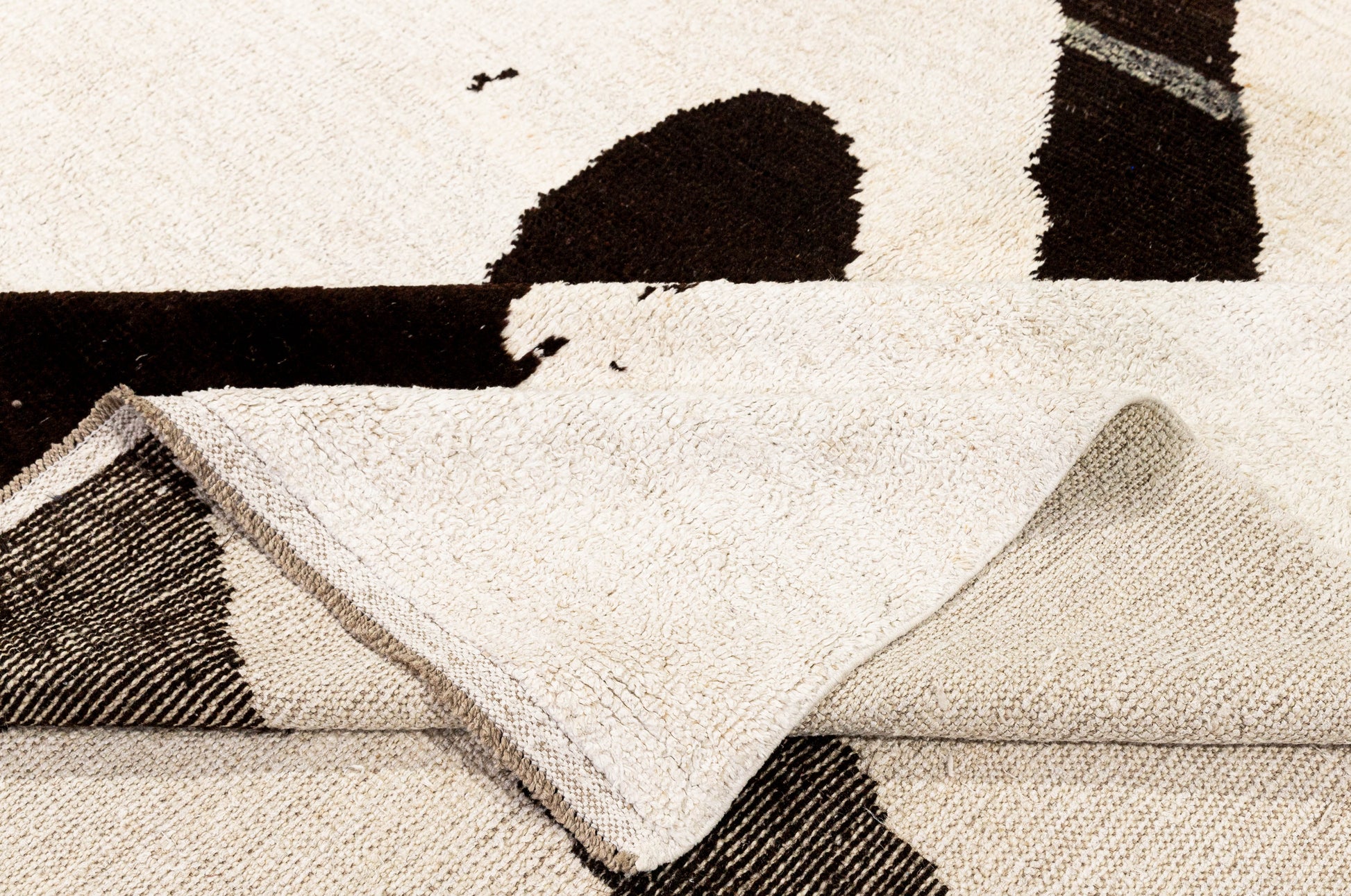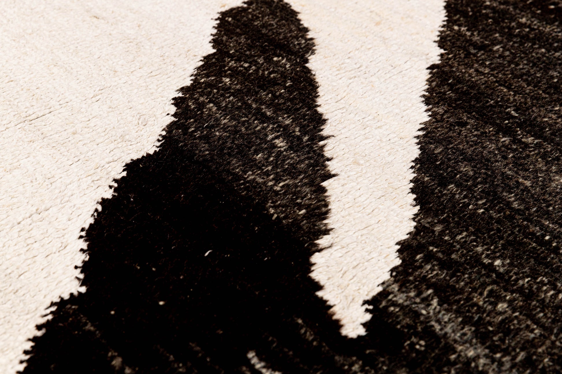 This contemporary rug, measuring approximately 10'1" by 13'9", is crafted from a blend of reclaimed hemp and wool yarns in a striking black and white palette. Its sustainable materials and modern design make it an ideal centerpiece for a sophisticated living room, offering both durability and eco-conscious style. The natural fibers provide a textured, comfortable surface while enhancing the room’s aesthetic with a timeless yet fresh look.